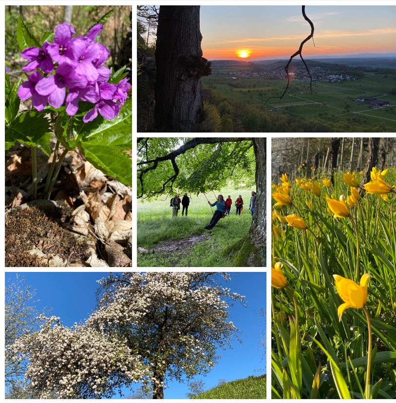 Nach einem arbeitsreichen Tag tut es gut, mit Gleichgesinnten ein paar Schritte durch die Natur zu gehn, ein gemeinsames Picknick zu geniessen und den Sonnenuntergang zu bewundern. Unterwegs lernen wir Pflanzen kennen, beobachten Vögel, knabbern essbare Wildpflanzen und Vieles mehr.