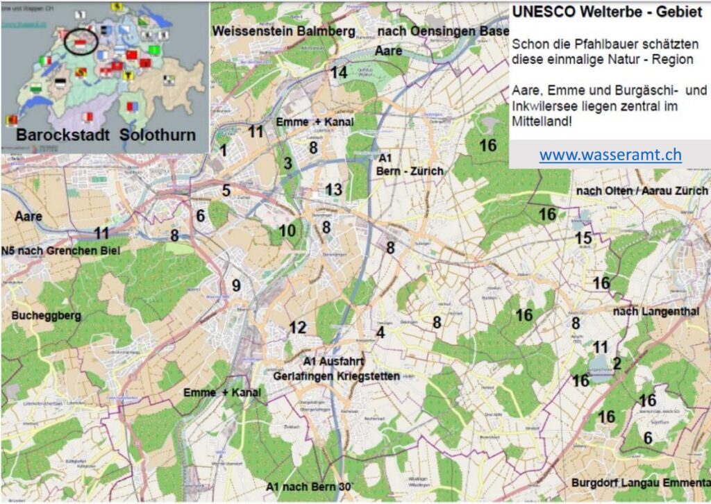 Wanderferien im Wasseramt SO? Ja, für Vogel und Biberliebhaber ein Paradies. Übernachten Sie im günstigen bnb oder im Camper auf dem Bauernhof, nur 200m vom See entfernt.Das Wasseramt ist bei Solothurn in der Mitte von Bern und Zürich. Sehr gut erschlossen und das äussere Wasseramt ist nicht nur zum Wandern top, sondern auch für Veloferien Schweiz – siehe Karte Wasseramt und Velotour ab Solothurn